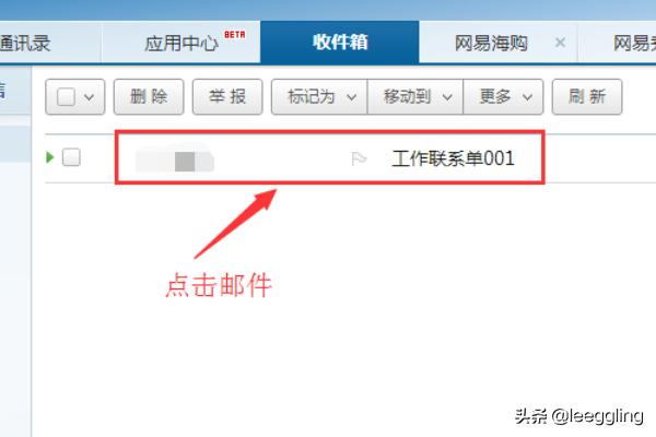 3,进入收件箱中后,找到需要下载文件资料的邮件,然后鼠标左键点击该邮件。