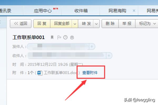 4,进入该邮件的页面。通过邮箱发送的文件类型一般为压缩包、word、excel或者是图片。而这些文件都是先上传到附件,然后通过附件发送过来的。我们可以点击“查看附件”功能键,也可以直接把邮件页面下拉到较底部,这样就能看到附件中的文件资料了。