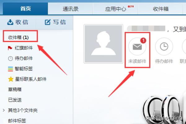 2,成功登录网易邮箱后,我们点击页面左上角的“收件箱”。如果发送过来的邮件没有被阅读过的,我们也可以点击“未读邮件”的图标。