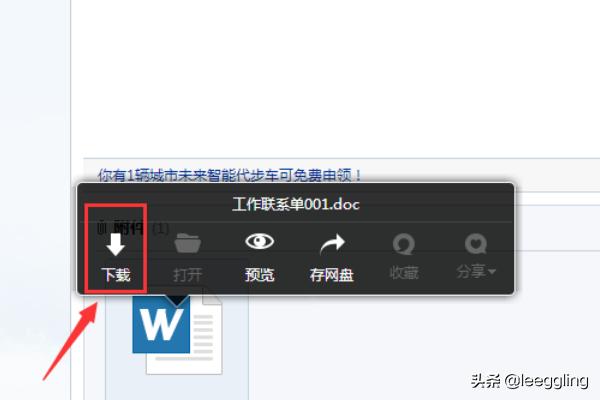 5,如果附件中有很多文件资料,我们把鼠标放到需要下载的资料上,这时就会出现隐藏的功能菜单,我们点击“下载”功能键。