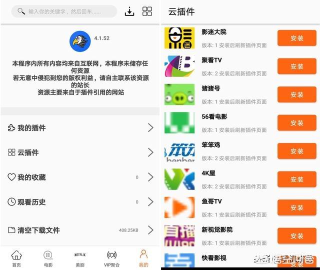今天诸葛给大家分享的这款app,本是以美剧为主打,基本上你想看的美剧美国电影都可以找到,但这款app的强大之处在于,可以添加插件,前期分享的影迷大院、4K影视、快看等广受老铁们好评的观影神器都可一键添加,除了这丰富的资源外,它还支持电视投屏、自动播放下一集、影视资源缓存等,最为可贵之处是它没有任何广告,为了大家使用的更长久,请自己使用就好!