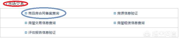 3、在该页面,找到市场交易板块,选择商品房合同备案查询