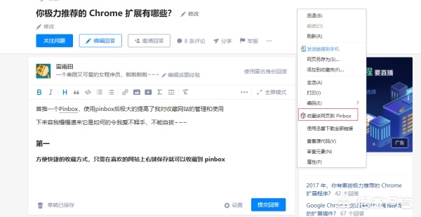 下来容我慢慢道来它是如何的令我爱不释手,不能自拔~~~第一方便快捷的收藏方式,只需在喜欢的网站上右键保存就可以收藏到 pinbox,同时可以选择想要收藏到那个收藏集,当然收藏集你要事先建好,它可以支持多级收藏集,就是可以嵌套,牛逼吧~
