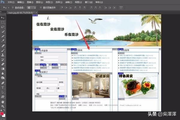 3. 制作网页图层,包括背景图层文字图层图片图层等。