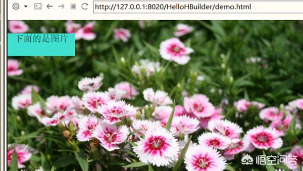 3、最后打开浏览器查看效果,div是在图片上面的。以上html中就是把背景图片置于最低层的方法。