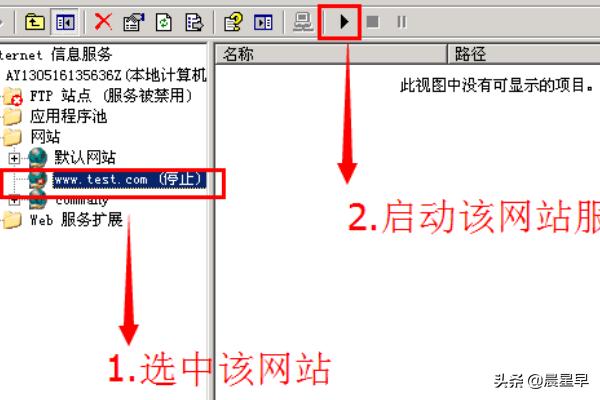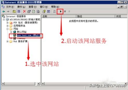 16、最后选中该网站,点击启动服务按钮。如下图所示: