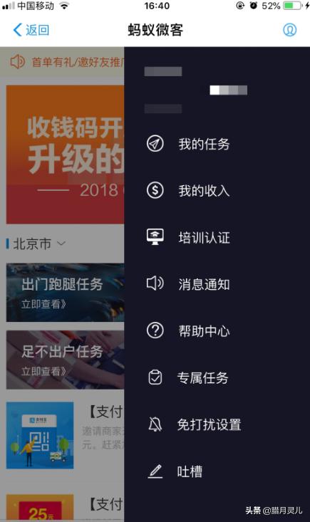 5、蚂蚁微客专属码是某些特殊任务,会有特殊的蚂蚁微客专属码,我们在主页面点击右侧的个人头像,在弹出的页面中,点击专属任务。