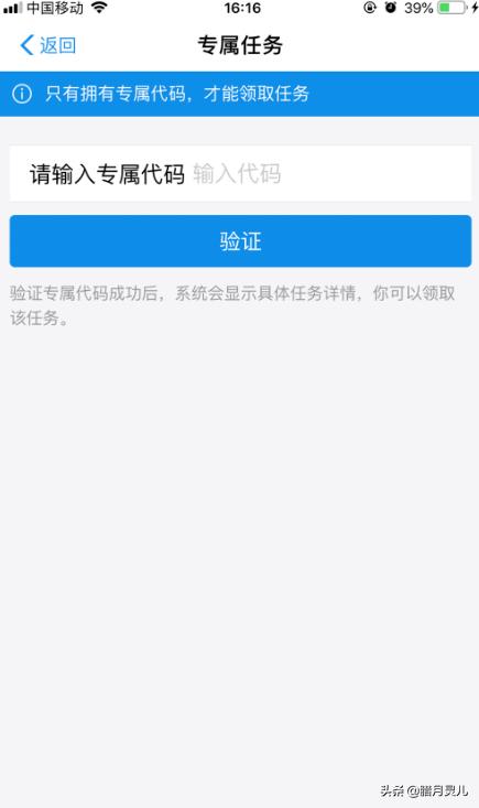 6、在专属任务页面,我们就可以输入蚂蚁微客专属码,从而直接进入到专属任务页面,完成对应的任务要求,即可接受专属任务。