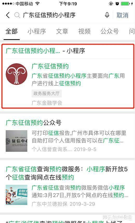 在广州查个人详细版征信如何预约?1、打开微信—在微信上方搜索“广东征信预约小程序”—然后点击“广东征信预约小程序”
