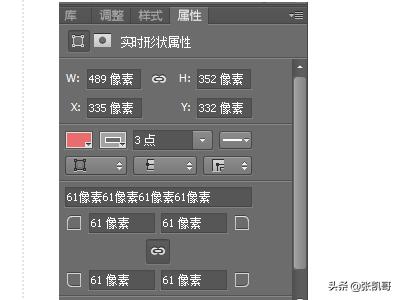 5、在属性面板中,我们可以调整圆角矩形的长,宽,圆角半径,以及填充和描边的效果。这里不做详细介绍。