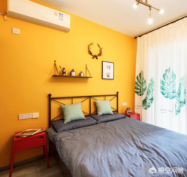 亮眼的黄色,配清爽的白底绿花的窗帘,能让卧室的视觉达到一种进深感、层次感。像黄色这种鲜明的颜色放在室内,几乎就是霸主的地位,窗帘与床上用品这些就成了配角,颜色用浅一点,轻一点,突出主题。