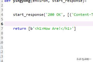 1先定义一个函数,用来向网站服务器发送请求:def yingyong(environ, start_response): start_response('200 OK', [('Content-Type', 'text/html')]) return [b'<h1>How Are!</h1>']要求网站在网页上显示粗体的How Are!