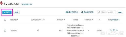 4、主机记录,就是你的二级域名名称。比如,我想让二级域名设为“sy.3ycao.com”,那么就在主机记录里填写"sy"。