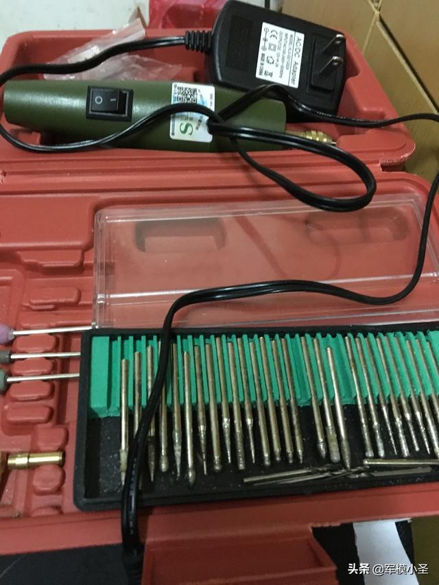 最后简单说一下手钻,手钻是用来钻孔用的,有些模型可能需要你进行钻孔,因此配备一把好用的手钻也是比较必要的,另外配一套各种口径的钻头,可以方便打出不同大小的孔。 这里顺带说一个巧用手钻的方法。比如需要在模型零件上开出一个较大的孔,可以使用手钻沿着要开孔的边缘密集打孔,就像邮票一样开出一整排的孔,然后使用笔刀将所有的孔连起来切掉,即可挖出大洞,之后用笔刀和砂纸进行修整就可以开出很漂亮的大洞了。