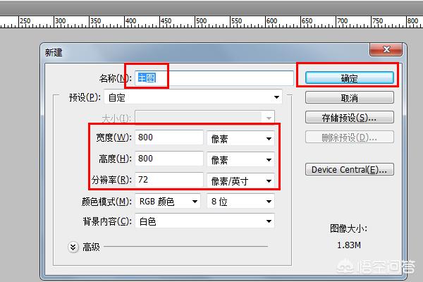 (3)输入名称设置背景图宽度高度等信息点击确定。
