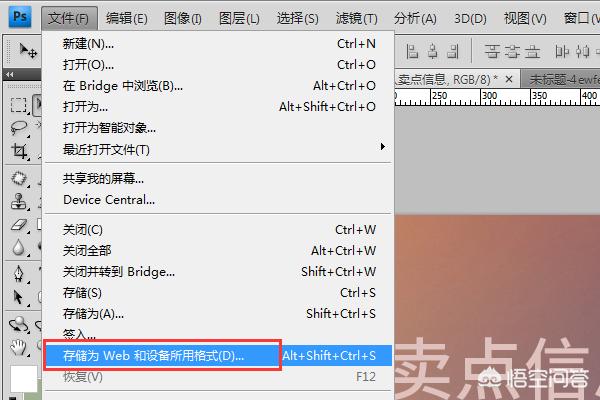 (13)点击存储为web和设备所用格式。