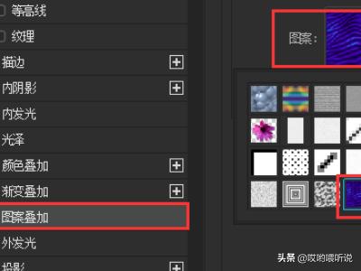 6、在图案叠加的样式里,选择一个自己喜欢的图案。这次操作选择一个颜色比较深一点的图案,点击【确定】。