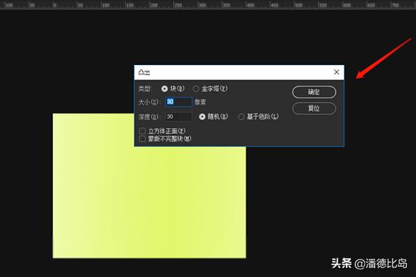 6、背景图层先选择滤镜菜单栏下的风格化凸出,然后将刚刚的素材置入,一张海报就完成了。
